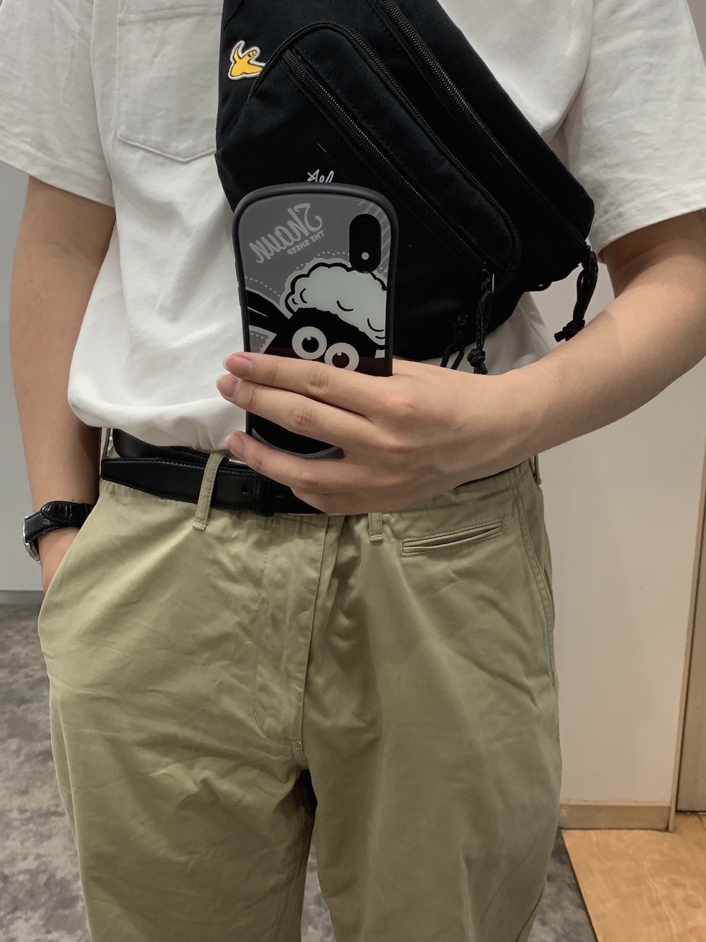 夏にピッタリのタックインコーデです🙆♀️ WEGOのTシャツにUNIQLOのチノパンです! マークゴンザレスのバッグがかわいすぎる😍