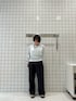 シャーリングブラウスにパンツスタイルで綺麗めコーデ!🩵 シューズで色を足してスタイルアップ⤴️🌱