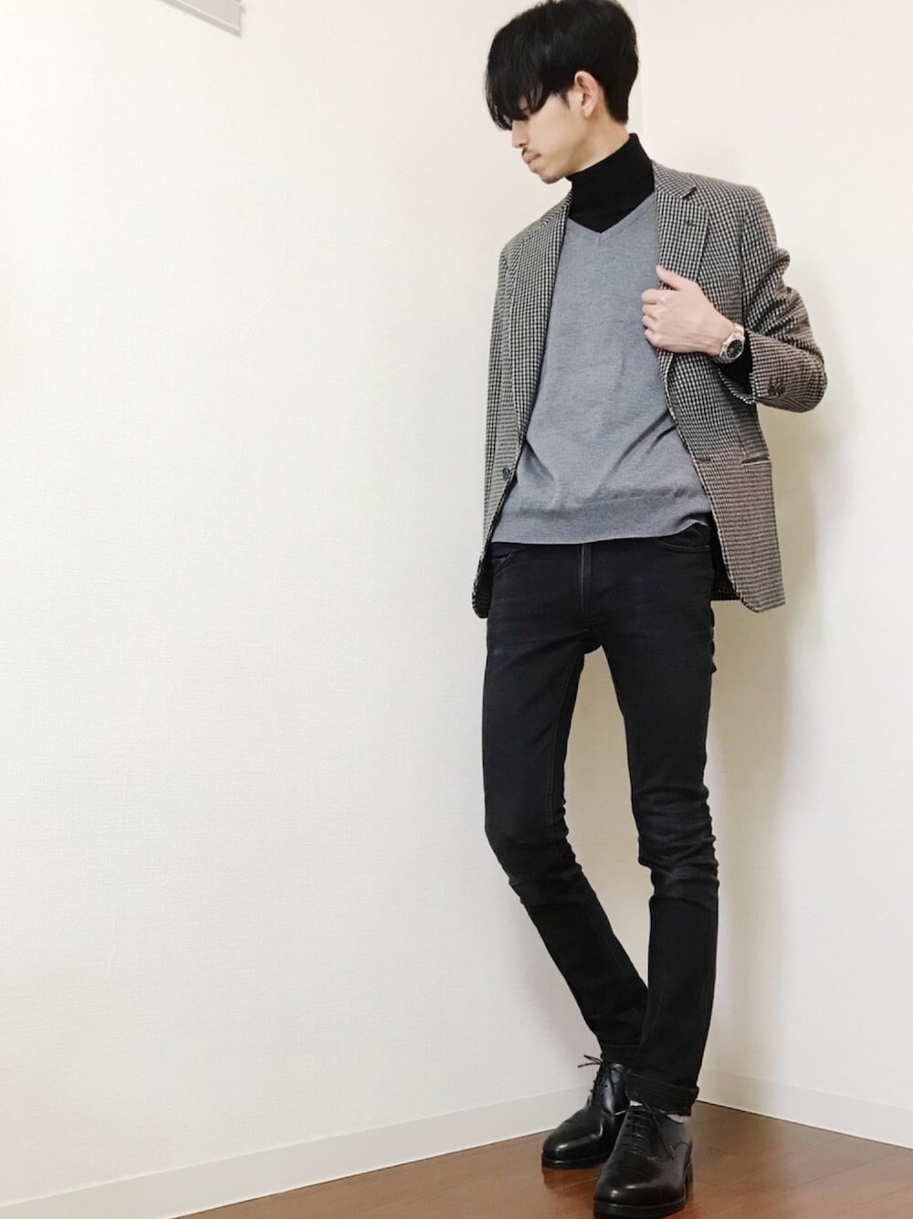 FUJISAWAのニット/セーター「・ベーシックニット 長袖Vネックプルオーバー」を使ったコーディネート