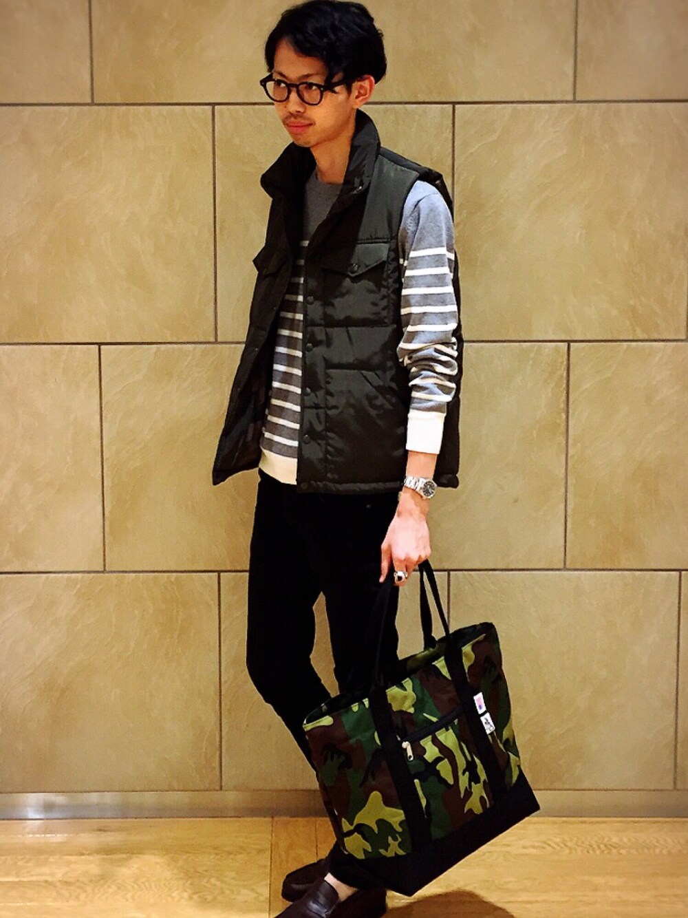 WEAR初投稿です。 よろしくお願いします。 SEVENDAYS=SUNDAY新宿店 ダウンベスト入荷しました。 実は裏がカモ柄です。