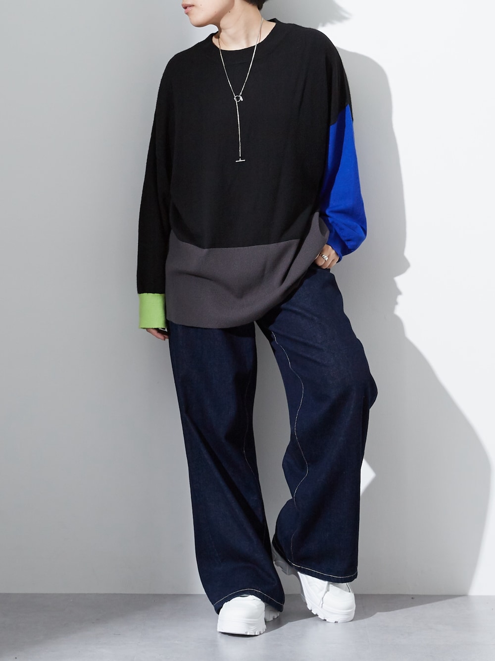 しかお(nissen本店)のニット/セーター「配色デザインオーバーサイズニット [Soiunique]」を使ったコーディネート