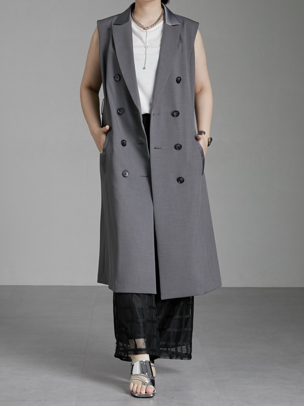 ・タンク 柔らかい手触りでどんなお洋服も合わせやすいです。 タンクトップだけど隠したいところはしっかり隠してくれます。 オフホワイトは濃い目のインナーを着ると透けることもあるので要チェック。 ・ベスト しっかりとした生地感のベスト。 すとんとしたラインが細みえで◎ ・パンツ メッシュで涼し気な一枚。 丈はちょうどいいけど、するのが不安の人はヒールが無難〇 ・サンダル シルバーがかわいいサンダル。 鼻緒の部分が痛くなるかと不安でしたが、甲部分でホールドされるので気になりませんでした(個人の感想です 身長:161.5cm 骨格:骨格ウェーブ 普段サイズ :トップス M /ボトムスL /シューズ24.5cm バストF65