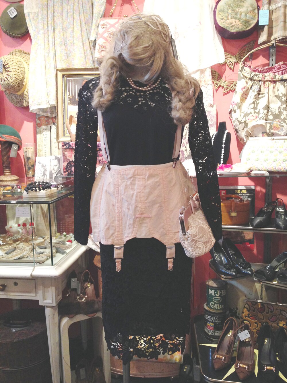 ・VINTAGE ビジュー付ヘッドドレス ・レース切り替えトップス ・サスペンダー ・レースタイトスカート ・VINTAGE コルセット ・3way レースバッグ 少し大きめのコルセットを、スカートと重ね着させたちょっぴりフェティッシュなコーデ レース切り替えトップスは、Online Shopからもお買い求めいただけます。 http://g2q.shop-pro.jp/?pid=72525075