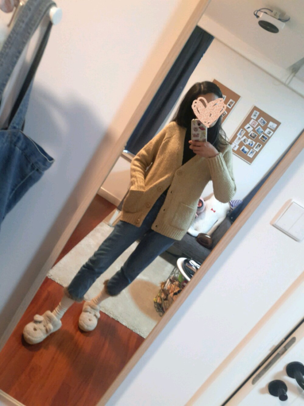 有点小复古的毛衣开衫加上牛仔裤 淡淡的很休闲 有点小调皮 但又不失淑女哦✍