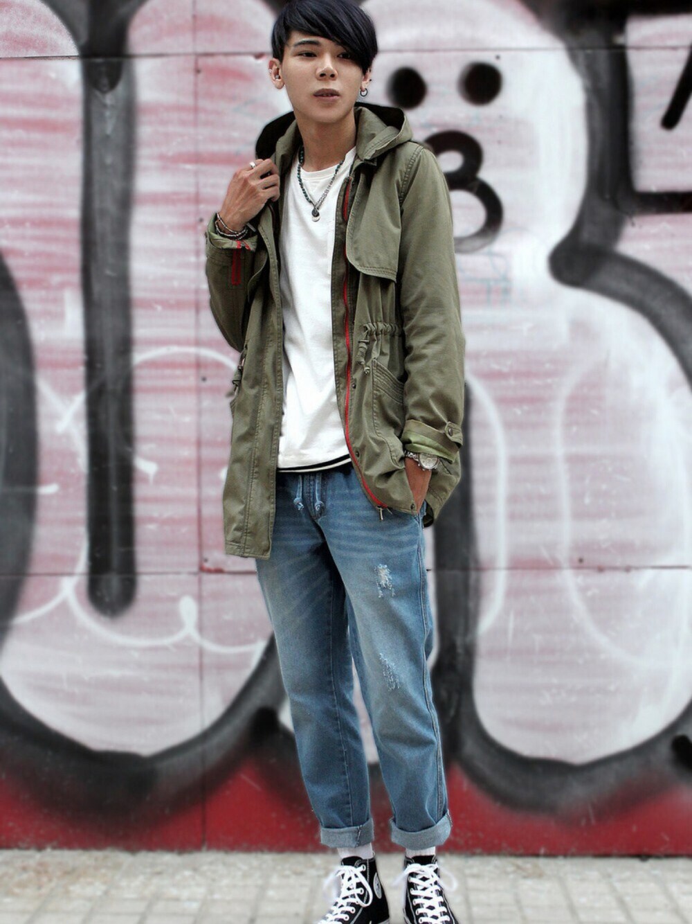 今天的天氣涼到將外套翻出來穿了 我愛死這天氣了 至少上班不需要曬熱死人的太陽 上半身部分: 內裡用了兩件(白T+長版橫條T)做搭配 在以軍綠長版外套做層次的呈現 下半身部分: 褲子選了件較休閒款的抽繩牛仔褲(因為懶得細皮帶) 摺到約八分露出白襪做點綴 最後在搭配上基本款高統Converse 謝謝大家耐心的看完~ 如你(妳)喜歡也可以直接加FB 可以看到更平常的我 https://www.facebook.com/baiyingx