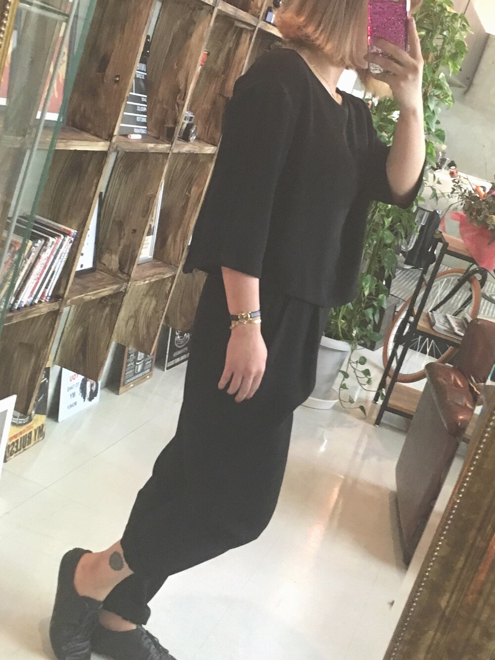 本日、大好きな全身ブラックコーデ! 黒はやっぱり落ち着くし大人っぽくなれるし、何より薬剤が飛んでも汚れないメリット!!