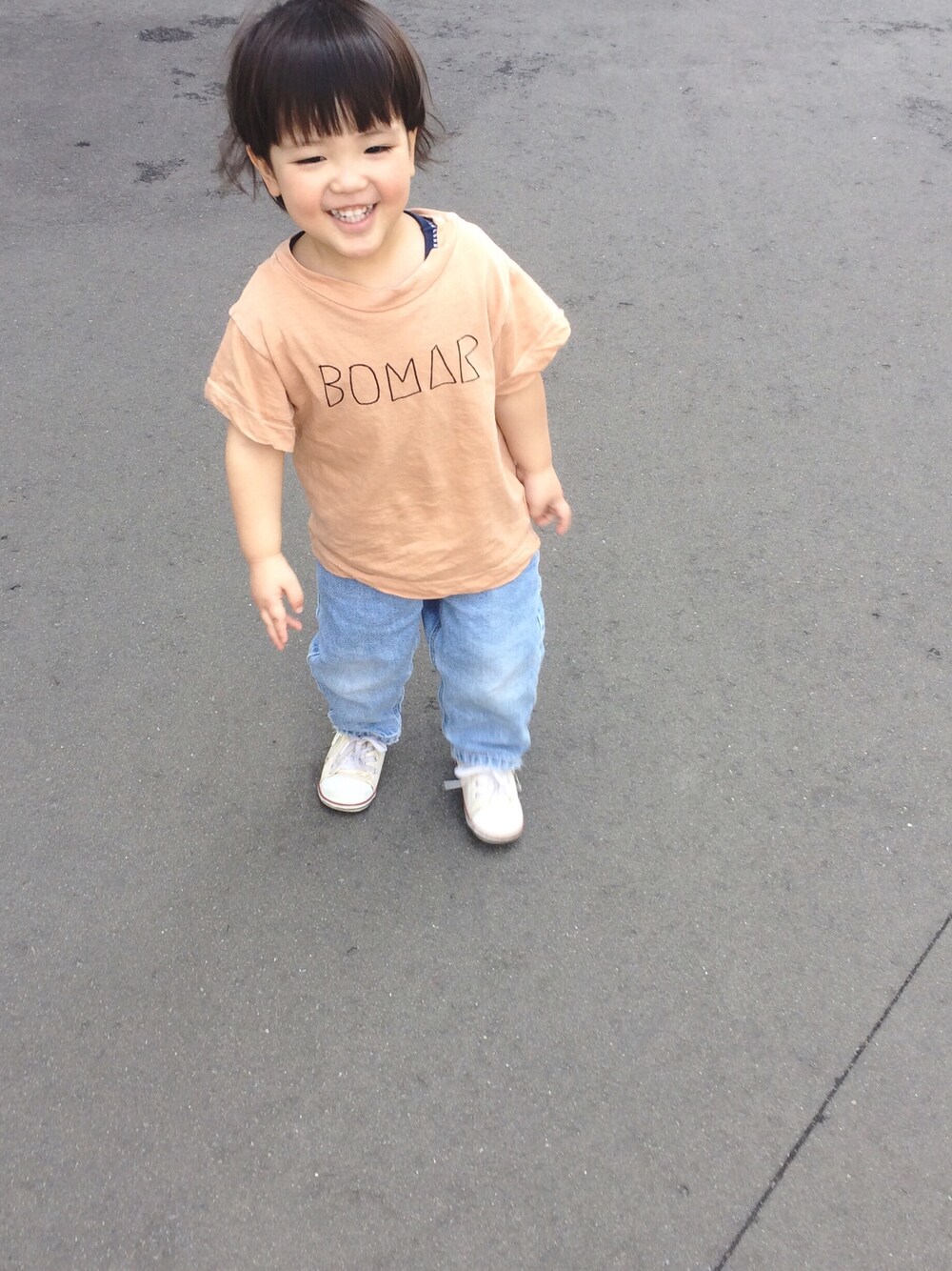 ピンク系のTシャツ/カットソー、ブルー系のデニムパンツを着用したキッズの春コーディネートの1枚目の写真