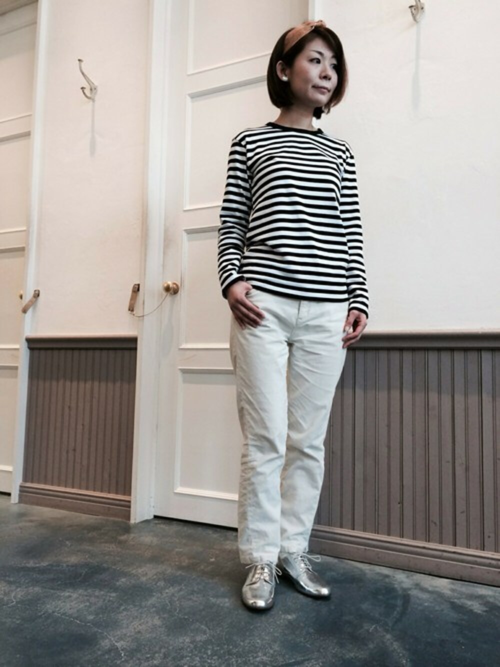 ボーダー×ホワイトでさわやかコーディネート。