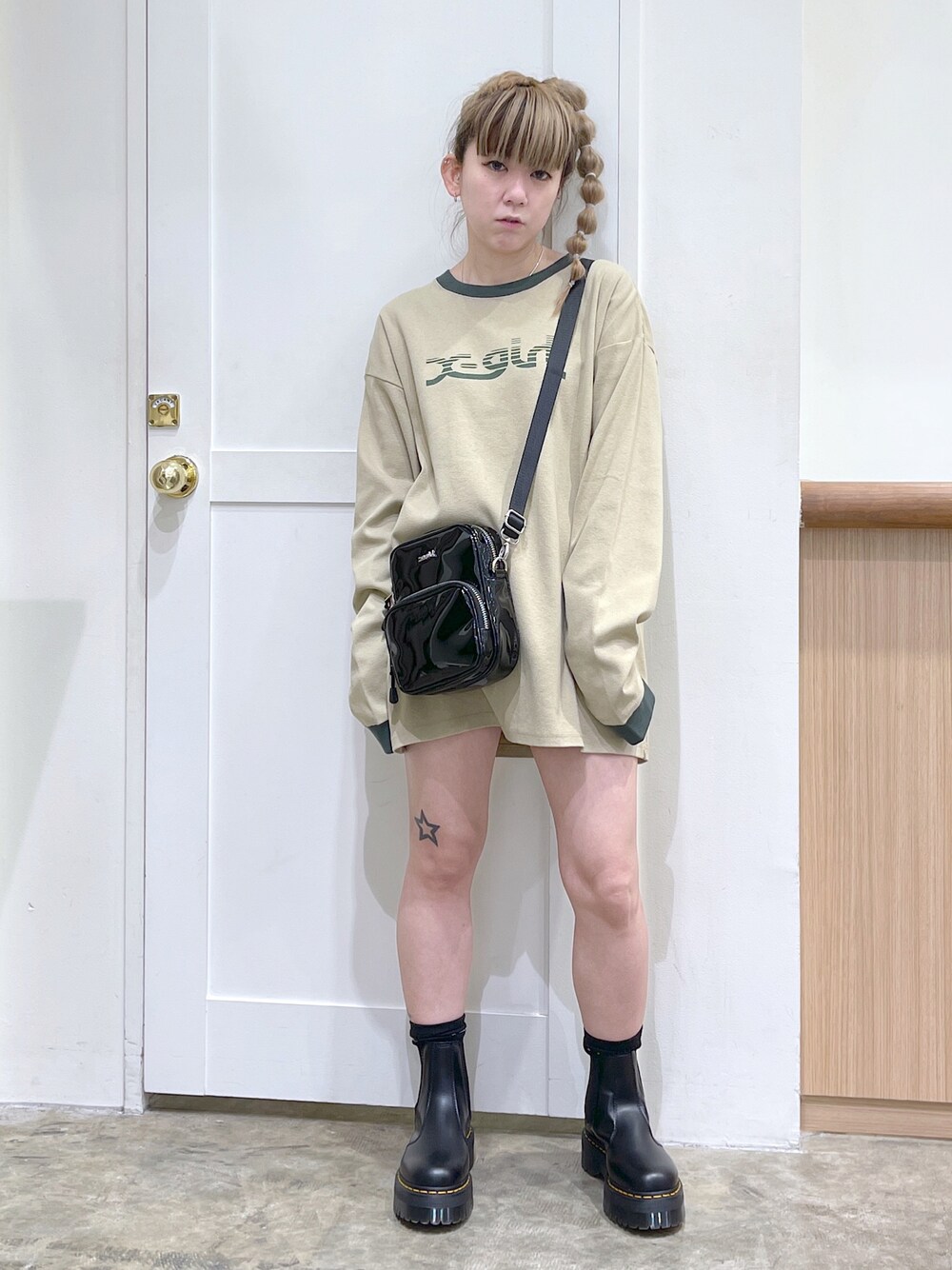 北浦佳那美のTシャツ/カットソー「SLICE MILLS LOGO L/S BIG TEE/ビッグシルエット リンガー ブランドロゴ ロンT」を使ったコーディネート