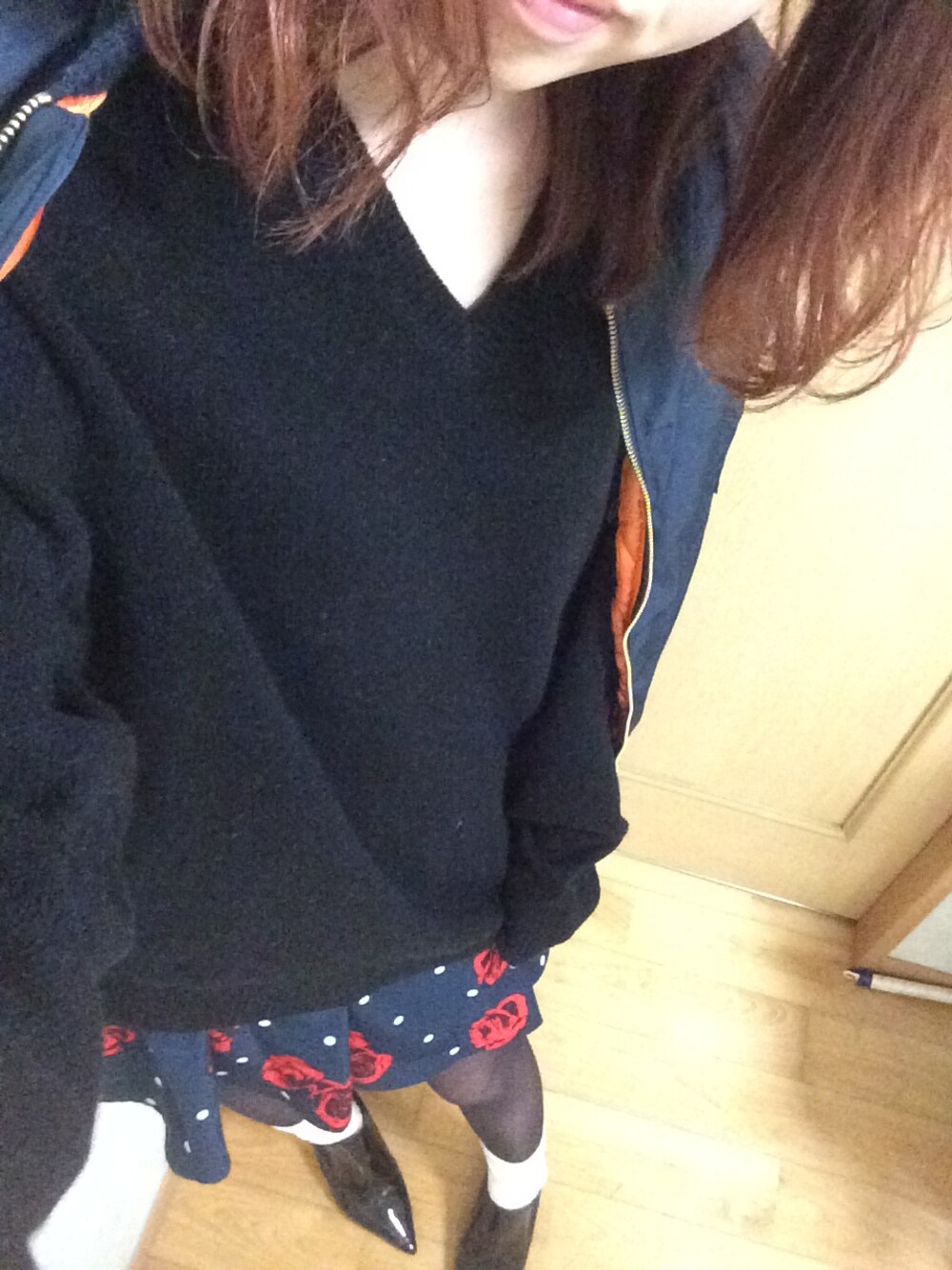 MA-1着回し〜(笑)(笑) 靴下の色でいっつも迷うーーー! 黒と白どっちがいいかな〜、
