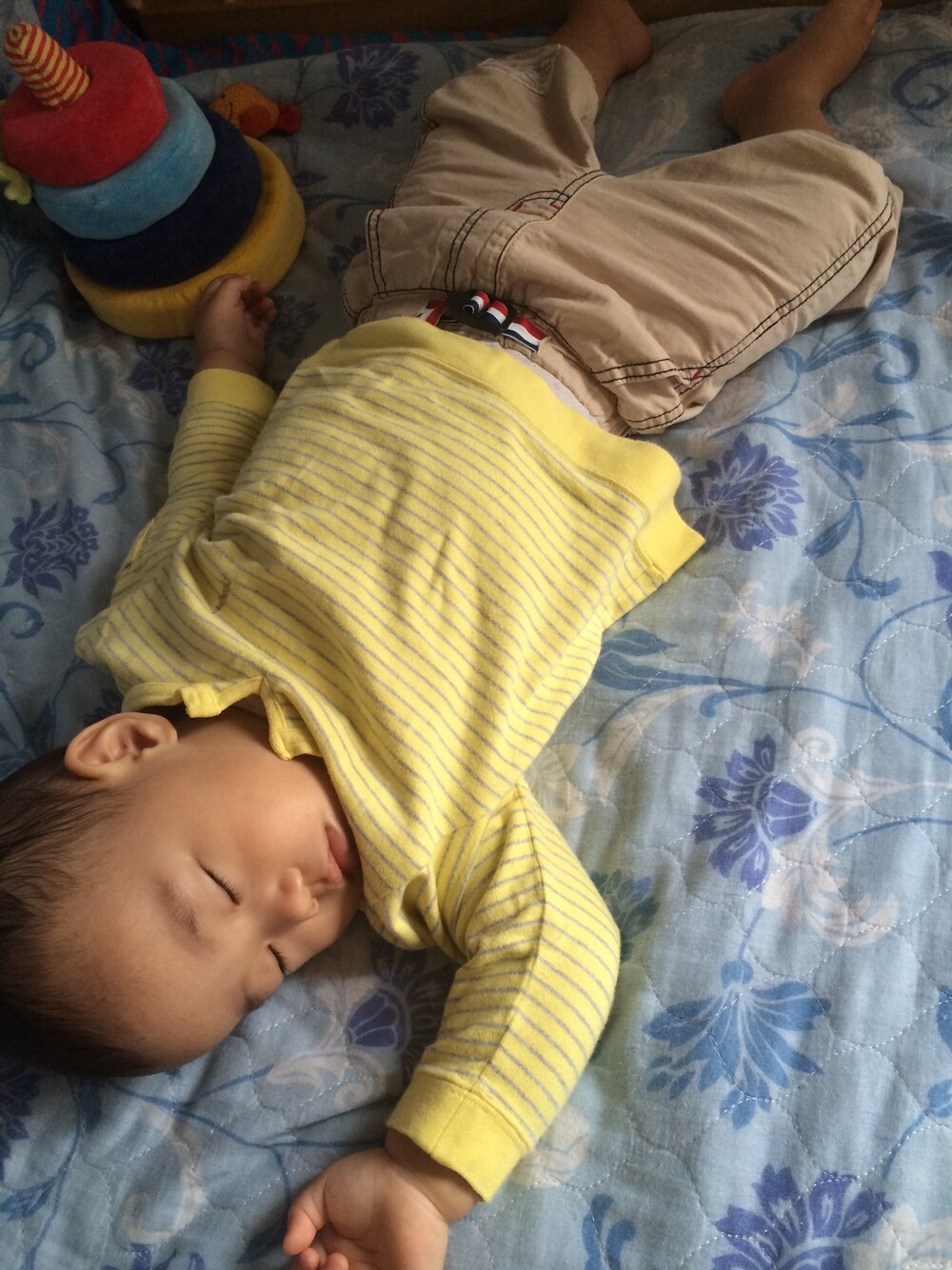 あら!黄色お似合い。爽やか! なかなかまっすぐ立ってじっとしててくれないので、お昼寝中に撮る。
