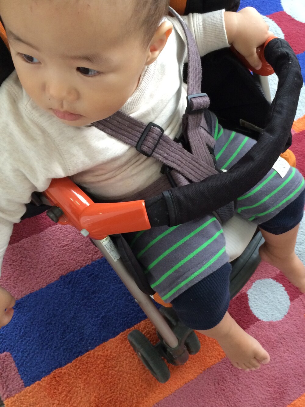 無地のスエット、イメージ通りのがバザーで100円だったんだけど、80cm。袖が短いなー。