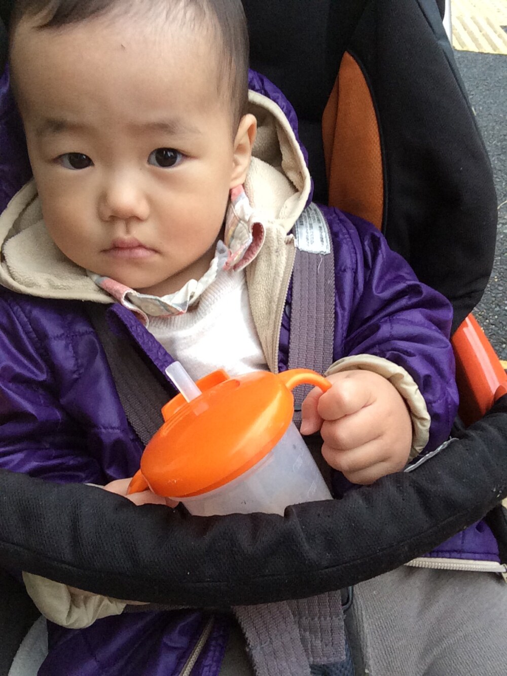 寒くなりましたね〜😲 襟だけ出てるシャツは半袖😅 サイズアウト寸前なのでしつこく着せる!
