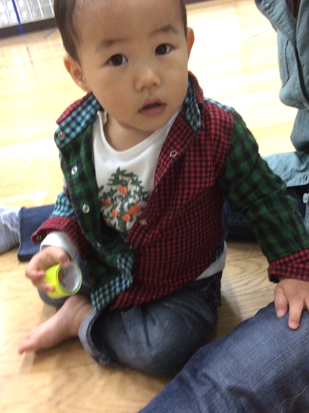 交換会でゲットしたシャツ。90で袖折るのが面倒で80がひとつ欲しくて、でもぱつぱつです。 この手の柄シャツに合わせる用にゲットしておいた白地のロンTで。