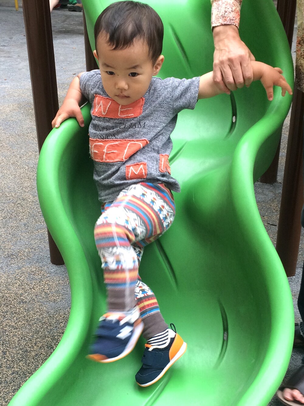 旦那のおばさんが買ってくれたスニーカー(13.5)もったいないとしまい込んでたらサイズがギリギリ…!14を中古で買ってみたらぴったり! Tシャツは100です。 一歳八ヶ月。