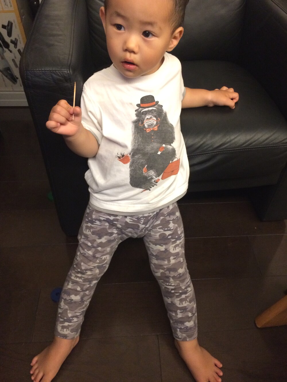リサイクルショップで一枚50円でTシャツ2枚とシャツ1枚ゲット! これは重ね着風でおしゃれ。サイズ92cmでぴったりだし。ヘビロテしそう。