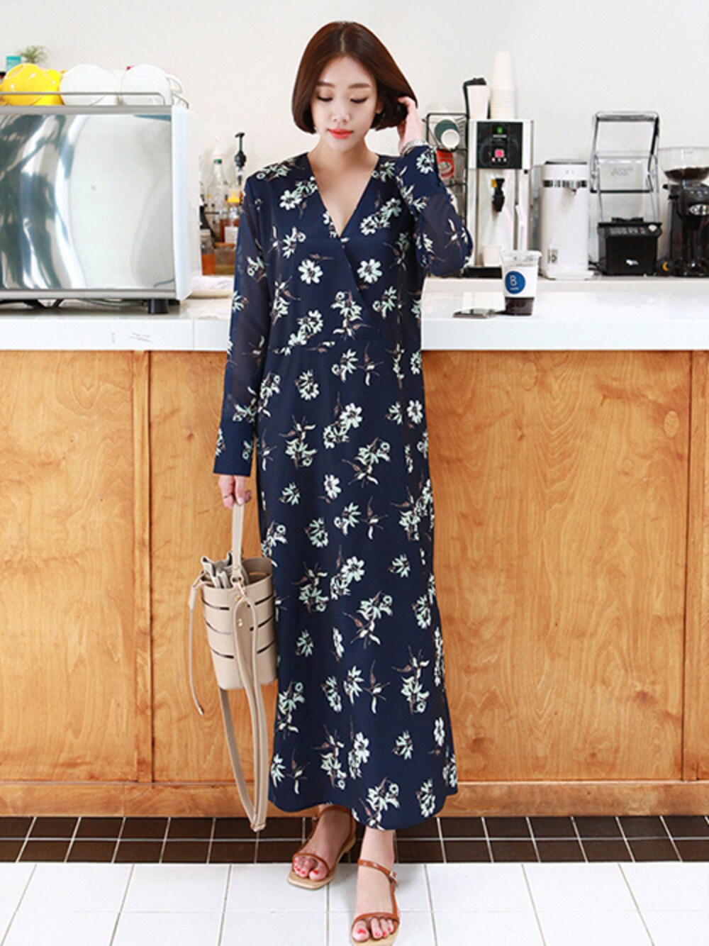 gaensoのワンピース「フラワーVラップマキシワンピース」を使ったコーディネート