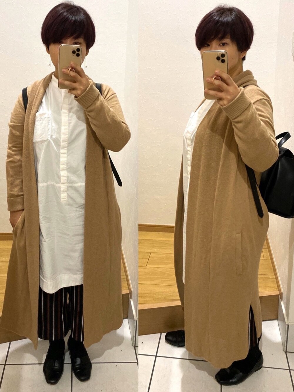 曇り時々雨。21/14度。 日中は少し暑かったかも💦夜はちょうど良い感じ◎ ロングカーデは少し厚めの秋冬仕様。 髪の毛、マッシュショート&カシス的な色味にしてきました。 タイツも履いて、バッチリ秋仕様です。