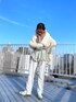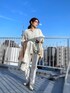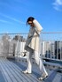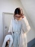カーディガンがボリュームあるので 中のブラウスはベルトで抑えました。 4枚目のはどこかで見た着こなしをマネしてマフラー肩からかけてみたものの、正解が分からず直立してますw ブラウスがほぼ白に見えますが 淡〜いグリーンです🍃