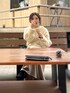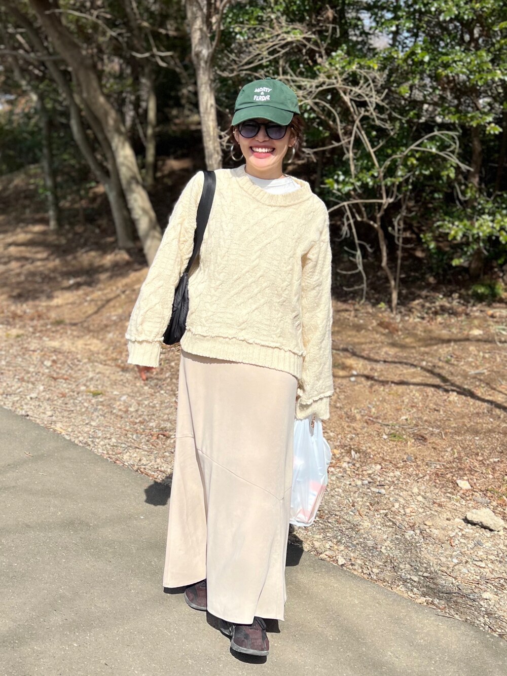 キャミワンピをスカート風に着てます。ほっこりニットなのでサングラスとフープピアス😎 2枚目の開けっぱなしの夫の財布はスルーしてくださいw