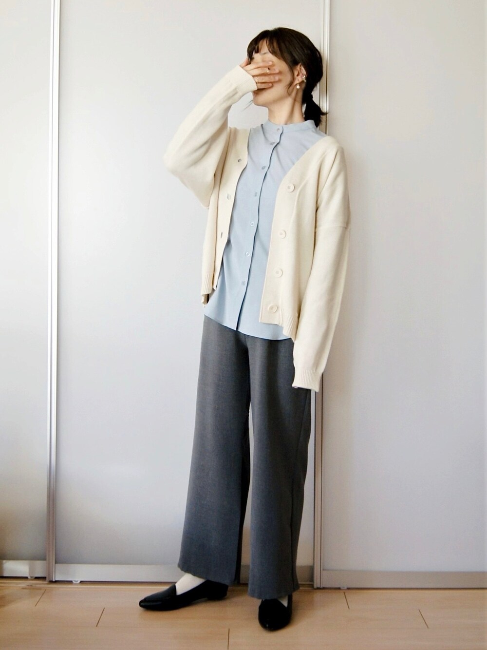⌘背伸び スタイル良く見せようとしすぎて 気付いたら背伸びしてます。 そんな写真です。 最近はパンツインせずに 上下ゆるゆるが気分です♡ カーデの合わせ方極めたいなぁ🐏
