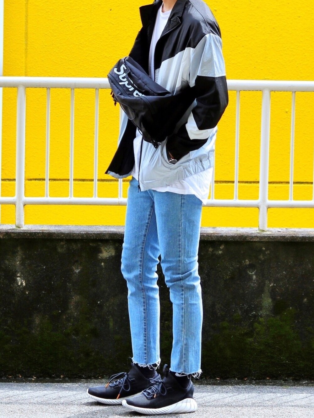 gakuのナイロンジャケット「カラー切替ナイロンジャケット」を使ったコーディネート