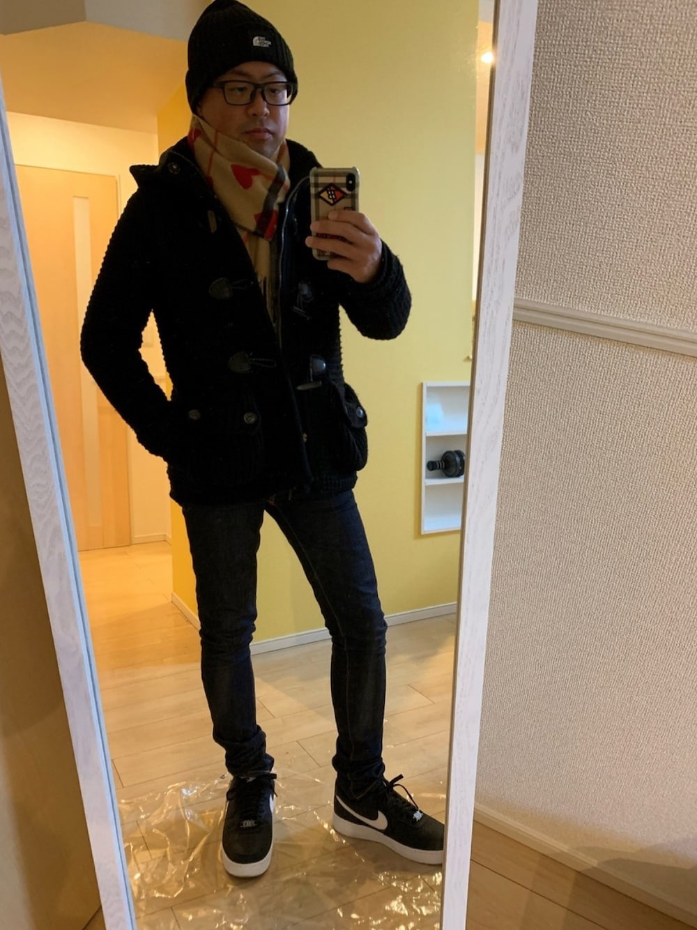 ニットダッフルにバーバリーのハートのマフラー♥️
