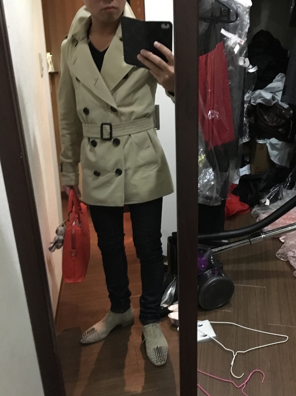 バーバリーのトレンチコートのコーデ 身長がないと、着こなしが難しいです😂