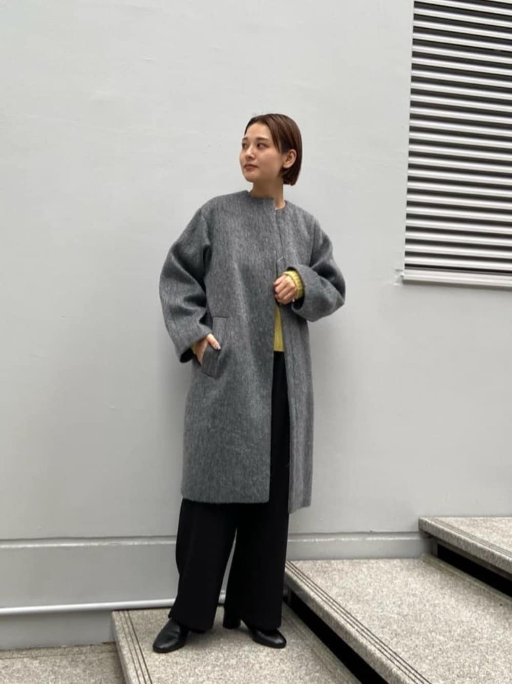 【サイズ感】 アウター:ゆったり トップス:ゆったり ボトムス:標準 【着用レビュー】 アウターは軽くて暖かいシャギーコート。 ゆったりシルエットなので着込んでも大丈夫です。 長めの毛足でおしゃれに仕上げてくれます。 トップスはラメが混ざったニットで、光に当たってキラキラと光るのがポイント。上品なきらめきです。 着丈はヒップにかかる程度なのでパンツやフレアスカートとの相性も◎。 パンツはトレンドのカーゴパンツデザイン。 裾のコードはお好みで調節していただけます。 伸縮性がありかなり動きやすいです。