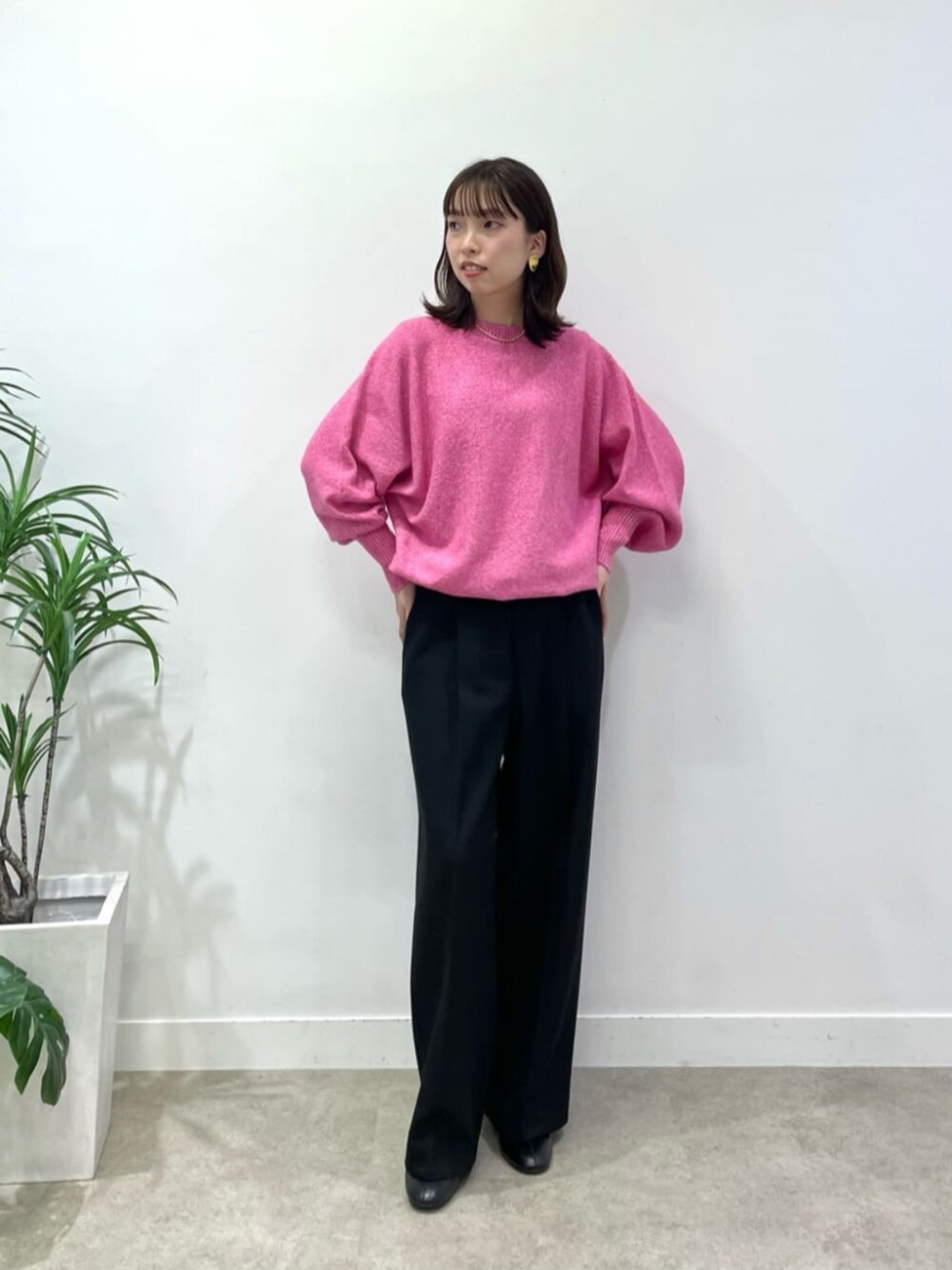 [サイズ感] トップス:ゆったり ボトムス:ゆったり [コーディネート] ハンサムピンクコーデ。青みがかったピンクなので、甘ったるくならずに全体の透明感をアップしてくれます♪ピンクの中でもクールに仕上がる色味です。 ニットはラメ入りでもチクチクせず、ソフトな肌あたりでした◎