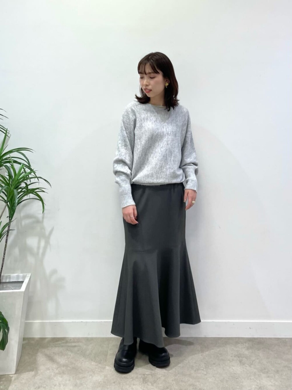 [サイズ感] トップス:ゆったり ボトムス:標準 シューズ:標準 [コーディネート] 濃淡グレーコーデ。グレーはいくつ重ねても重たくならないのが魅力♪ ニットはたっぷりめですが、裾がリブで止まるのでスカート合わせもインせず決まります。 ラメ入りでもチクチクせず、ソフトな肌あたりでした◎