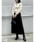 <サイズ感> コート:少しゆったり ニット:標準 スカート:標準 <着用レビュー> とても軽い着心地のリバーコートです。 スタンドネックにもなるので、首元も暖かく◎ スカートは暖かいフリース素材のフレアスカートです。 タイツなどと合わせていただくと真冬も履けそうです。