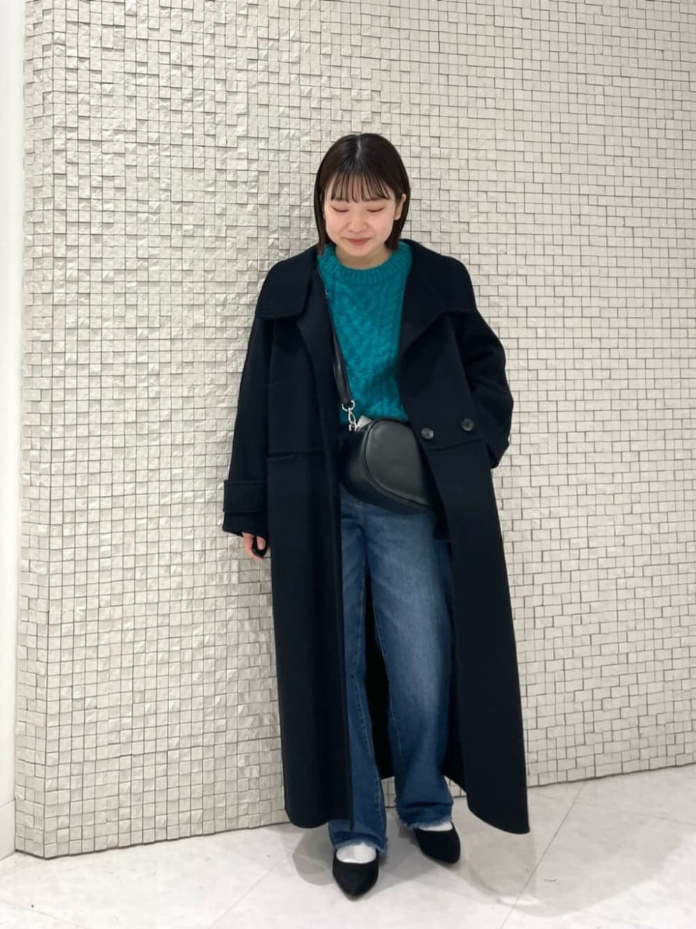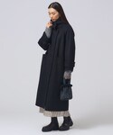 首元2WAYのリバーコート。 首元を開けた時ときと立てたときの印象がガラッと変わるので、きれいめにもカジュアルにも使い回せます◎ 〈サイズ感〉 ・アウター:36着用。ゆったりめ。ドロップショルダーなので厚手ニットも着込めます◎丈はふくらはぎ中間程の丈感です。 ・ニット:38着用。ゆったり〜標準袖はたぽっと感がありゆったりですが、丈感や身幅は標準です。 ・デニム:36着用。標準。丈感長めにゆったりと着用したかったためワンサイズ上げています。すっきりと着用したい方は05サイズがおすすめです!