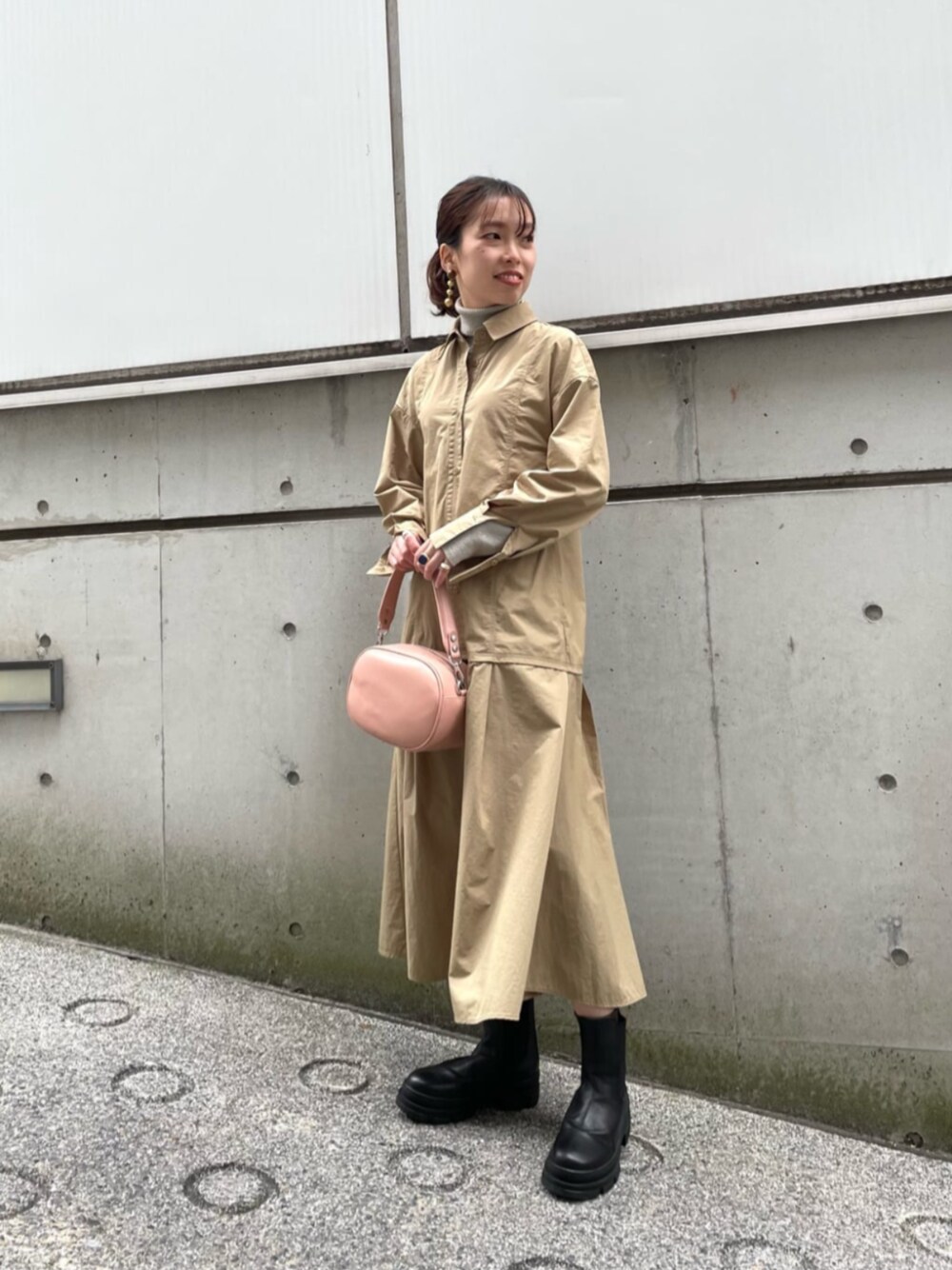 [サイズ感] ワンピース:肩まわり・バストラインがやや細め インナー:標準 [コーディネート] ワンピースはシャカ素材で甘くなりすぎず○ スニーカーを合わせてスポーティに着こなすのもお勧めです♪ 首元と袖からラメニットをのぞかせてオシャレ度UPを狙いました!袖のボタンを留めればさらにメリハリの効いたシルエットになります。