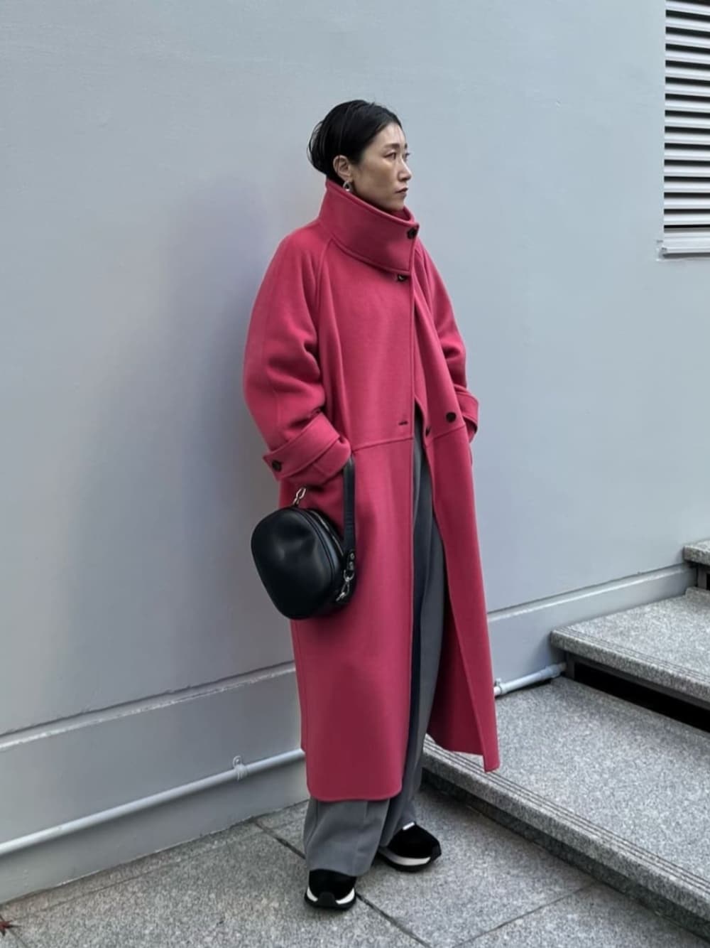 【サイズ感】 アウター:ゆったり トップス:標準 ボトムス:標準 【着用レビュー】 ベーシックなコートに飽きた方に着ていただきたいピンクのリバーコート♪ とても軽くてほわっと暖かいです! 首元ゆるめのスタンドカラーなので苦しくないですよ☆