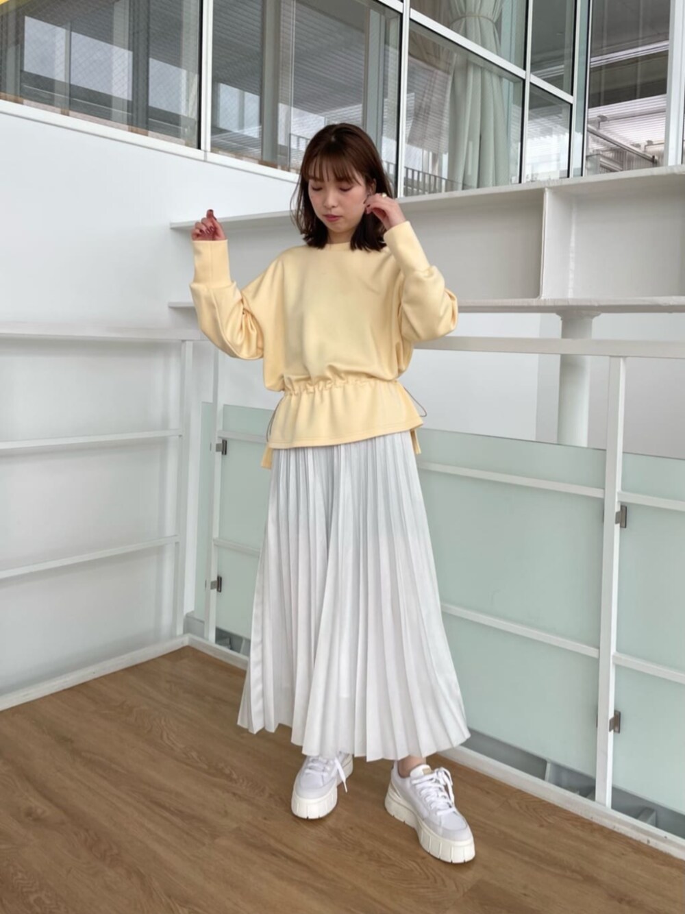 [サイズ感] トップス:標準 ボトムス:標準 シューズ:標準 [コーディネート] イエロー×シルバーの爽やか春コーデ。 カジュアルなスウェットには、キレイめアイテムを合わせて上品さをプラス! スウェットはドロストデザインでキュッと引き締められて、コーデにメリハリがつきます♪