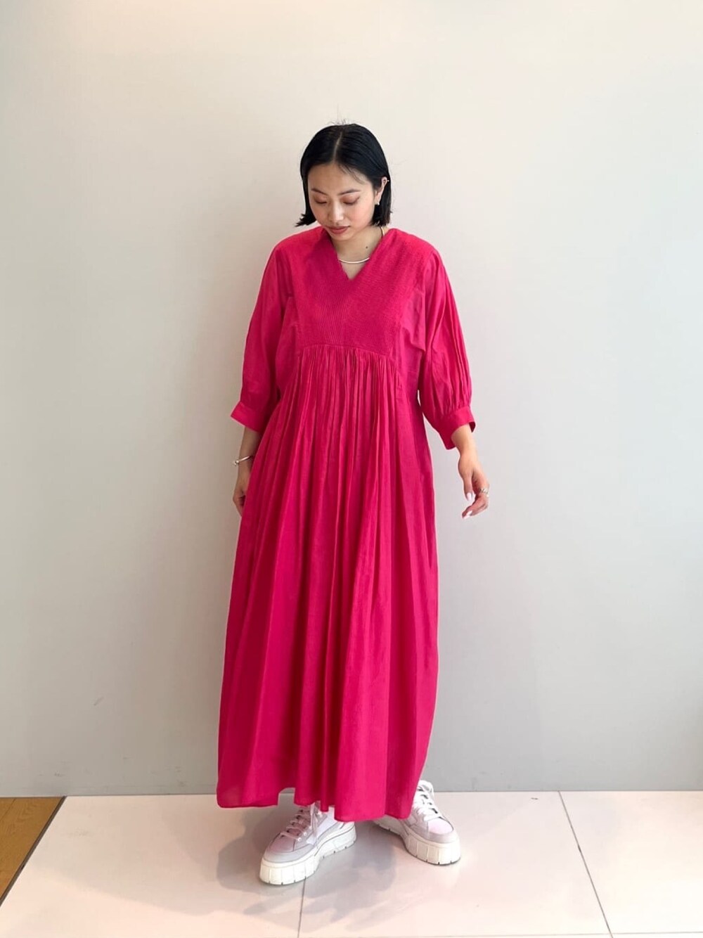 【サイズ感】 体型カバーも叶うゆったりシルエット 【着用レビュー】 コットン素材で柔らかく着心地◎ウエストの切り替え位置が高く、スタイルアップ効果も◎ さっと着るだけで決まり、ロングシーズン使えるのでコスパも◎持っておいて間違いなしの、とても重宝する1着です!