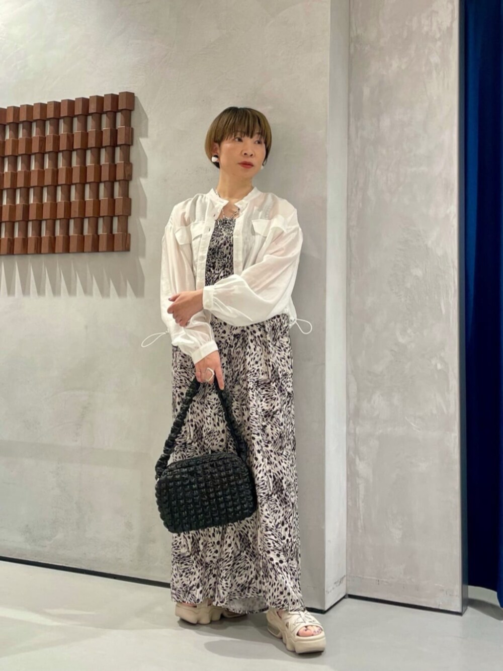 サロペットにブラウスジャケットを羽織って、夏のお出かけ。 ジャケットは、ポケットのフラップがポイント。 裾を絞って丸みのあるシルエットで着るのがおすすめです。 サロペットは、ツルンとしたサテン生地。 裾のボリュームが可愛いです。 夏のリラックススタイルに是非!