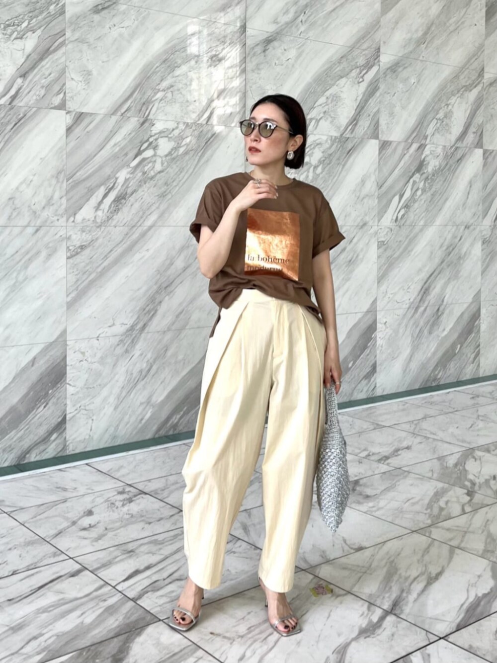 【サイズ感】 トップス:標準 ボトムス:ゆったり 【着用レビュー】 大人も着やすい洒落感Tシャツ♪ メタリックなプリントが、シンプルなコーデを格上げしてくれます! トレンドのバレルパンツ♪ 穿くだけで旬なコーデになれるので、いつもの服に飽きた方におすすめ! ウエストは通常より大きめに感じました。 36だと丈が足りなく感じたので、私はゆるめに38をリアルバイしてます☆