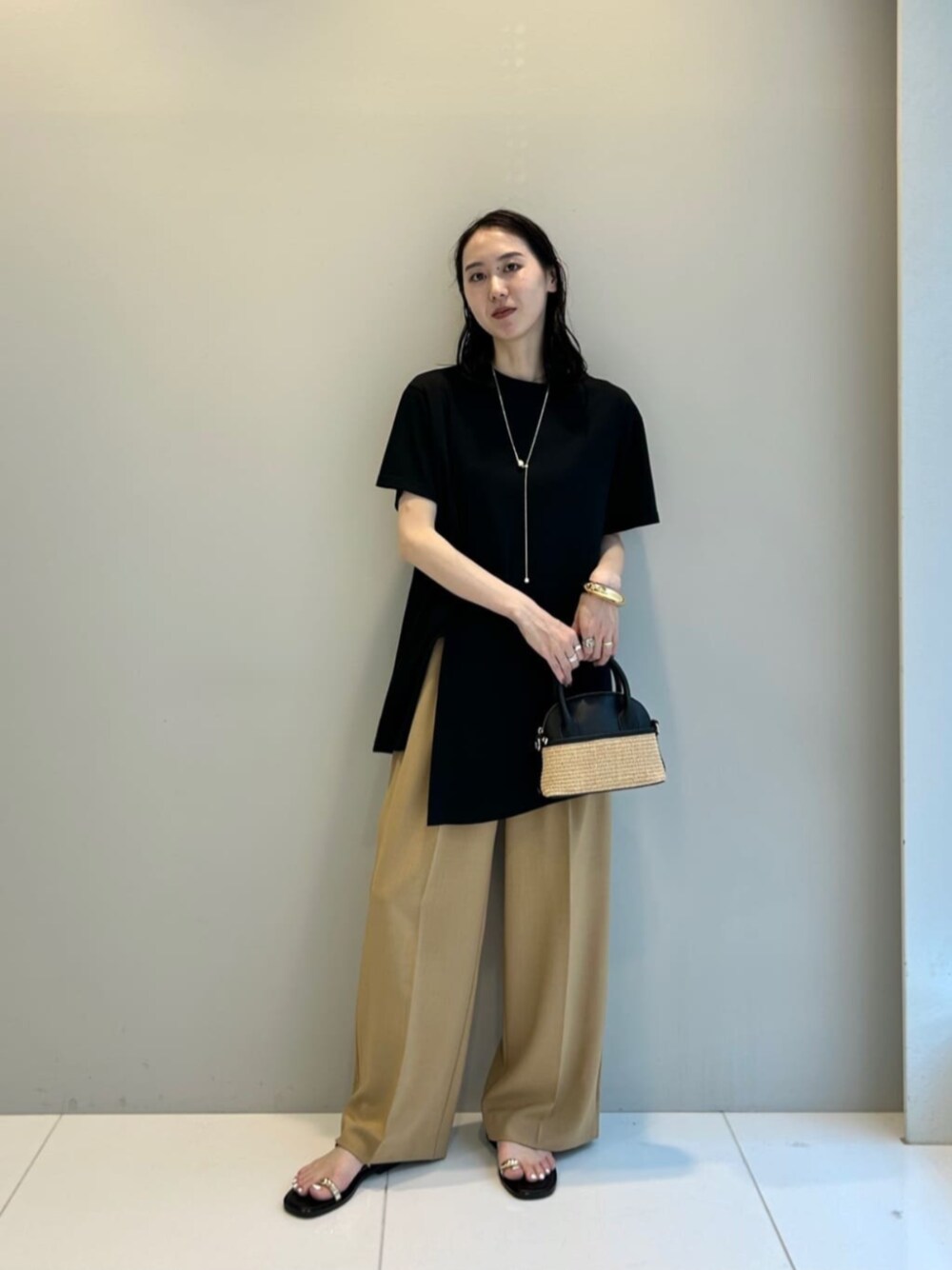 【サイズ感】 トップス:少しゆったり パンツ:ゆったりめ 【スタイリング】 ロング丈トップスはワイドパンツ合わせでモードさプラス! アクセサリーが映えるトップスなので、 大きめのネックレスなど◎ パンツはとっても楽な履き心地です! ギャレストのイチオシパンツです!