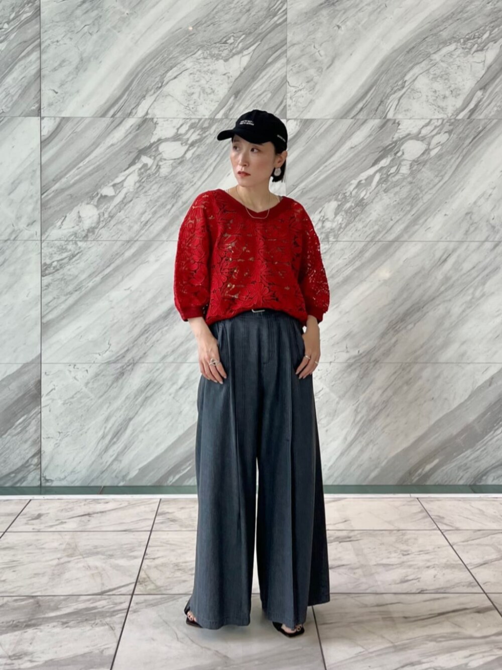 【サイズ感】 トップス:標準 ボトムス:標準〜ゆったり 【着用レビュー】 2way仕様のレーストップス♪ 深い赤が上質感をプラスしてくれるので、大人カジュアルに合わせやすいです☆ インナーはタンクトップやカップ付きキャミなど、見えてもいいものを選んでくださいね♪
