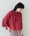 夏もシックにかっこよく/ 綺麗め見え大人カジュアルスタイル。 ○ネックギャザーブラウス 首元がドロスト仕様になっており、開き具合がお好みで調節可能!グッと絞ったり、オフショルにも♪ ボヘミアン調の袖口レースや紐のフリンジなど、細やかなこだわりポイント。 お袖長めですが、サラっと軽いインド綿使用の清涼感のある素材です。 日差しの強い夏のおでかけにもバッチリです♡ ○ダンガリーフレアスカート 分量たっぷりめにとった動きのあるシルエット。 今回ウエスト落として着用しておりますが、ジャストだと足首がしっかり見える丈感です。 長すぎず、身長問わずお召しいただけます♪ 薄手で柔らかいダンガリー生地は暑い時期の味方! ブラウスのデザインがしっかり効いてくれるので、アクセサリーは華奢に。足元は黒でシックにまとめました。