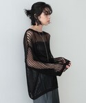 ヘルシーに肌見せ♪/ 夏のオールブラックコーデ。 ○ハシゴメッシュニット 大きめの編み目が今年らしいゆるっとニット。 重くなりがちな夏の黒も、肌見せで軽い印象に。 インナーの形や素材、カラーで変化を楽しめます♡ ○イージーストレートワイドパンツ 定番人気アイテム。穿いて驚く軽さ・楽さ♪ ご試着後は2枚買いやイロチ買いをしたくなるお客様多数! シルエットも綺麗で、オフィスから普段にまで着回せる万能パンツ。 スタッフからも大好評です♡ オールブラックで単調な印象にならないよう、アクセは長めネックレスでVラインを作り顔まわりもすっきり!