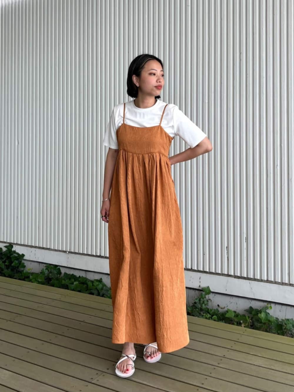 Tシャツとセットのキャミワンピースで大人のラクチンカジュアルコーデ♪ 【サイズ感】 Tシャツ:程よくフィット ワンピース:身体のラインを拾わないゆったりシルエット 【着用レビュー】 Tシャツ:レーヨン・ナイロン混素材でさらっと着られます! ワンピース:表面感のあるサテン素材で着るだけでオシャレ見えが叶います! 別々でも着られるので着回し力抜群なアイテムです!