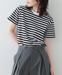 綺麗見え♪/ モノトーンカジュアル。 ○クロップドボーダーTシャツ やや着丈短めで様々なボトムスとバランスがとりやすいアイテム。 一枚あると便利なボーダーT。 すっきりとお召しいただけます。 ○ストレートラップスカート 巻きスカート風デザイン。 オフィスでも使いやすい綺麗めアイテム。 体のラインを拾わず、縦のラインを作ってくれる優秀アイテムです♪ 今回はボーダーTシャツがカジュアルになりすぎないようにアクセやミュールを用いました。 Tシャツをブラウスに変えると、オフィス仕様に。
