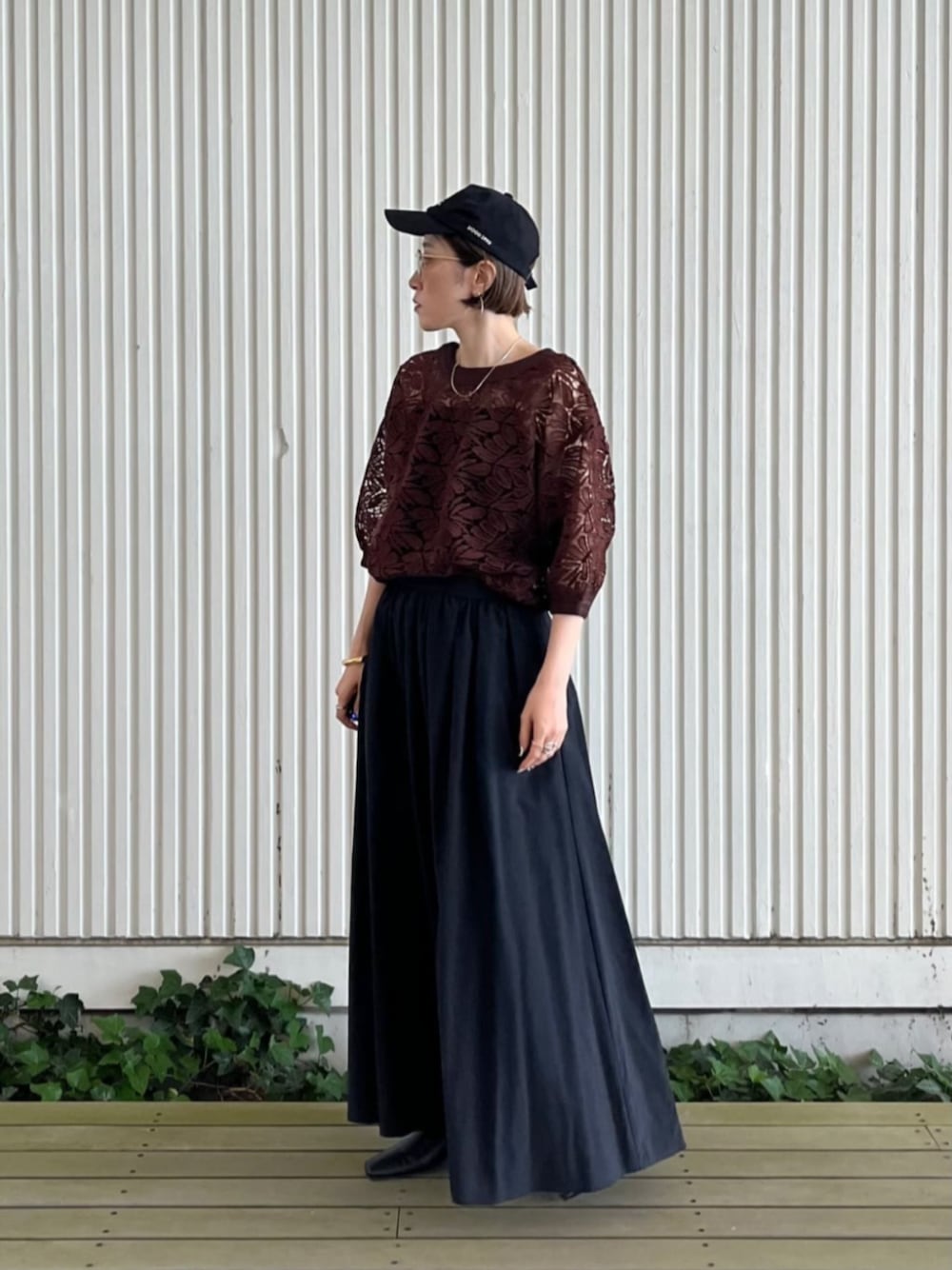 【サイズ感】 トップス:標準 ボトムス:標準 【着用レビュー】 大人気だったレーストップスに新色登場☆ ハリのあるしっかりめのレースなので、いい感じに体型をカバーしてくれます♪ 前後2way仕様のため、気分で見せ方を変えられます! 夏ですがあえてのブラック合わせで、モードカジュアルな雰囲気にしました♪ 初秋まで長く着られるカラーです!