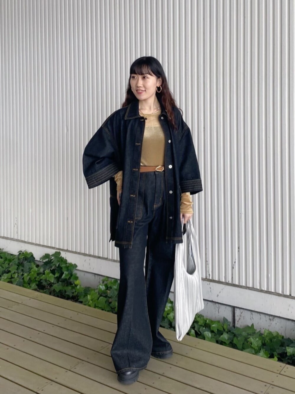 オーバーサイズが可愛い♡/ デニムセットアップスタイル。 袖丈は手首が出る長さ。 肩は落とし、全体的にゆったりめ。 ばさっと羽織るだけで決まるアイテムです。 前を閉めて一枚でも、開けて羽織としても♪ 袖口からカラーアイテムをあえて出すのもオススメ♡ 裾にかけてやや広がるフレアシルエット。 着丈長めでずるっと穿くのが今っぽい♪ それぞれ単品での着回し力も高く、秋から大活躍間違いなしです♪ 取り入れるだけで簡単トレンド感。