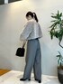 【サイズ感】 ジャケット:ゆったり トップス:標準 パンツ:標準 【スタイリング】 グレーワントーンは大人っぽく決まる! インナーと小物をブラックで締めて、 メリハリあるコーデに。 ボリュームあるジャケットですが、丈はスッキリ目なのでバランスとりやすいです!