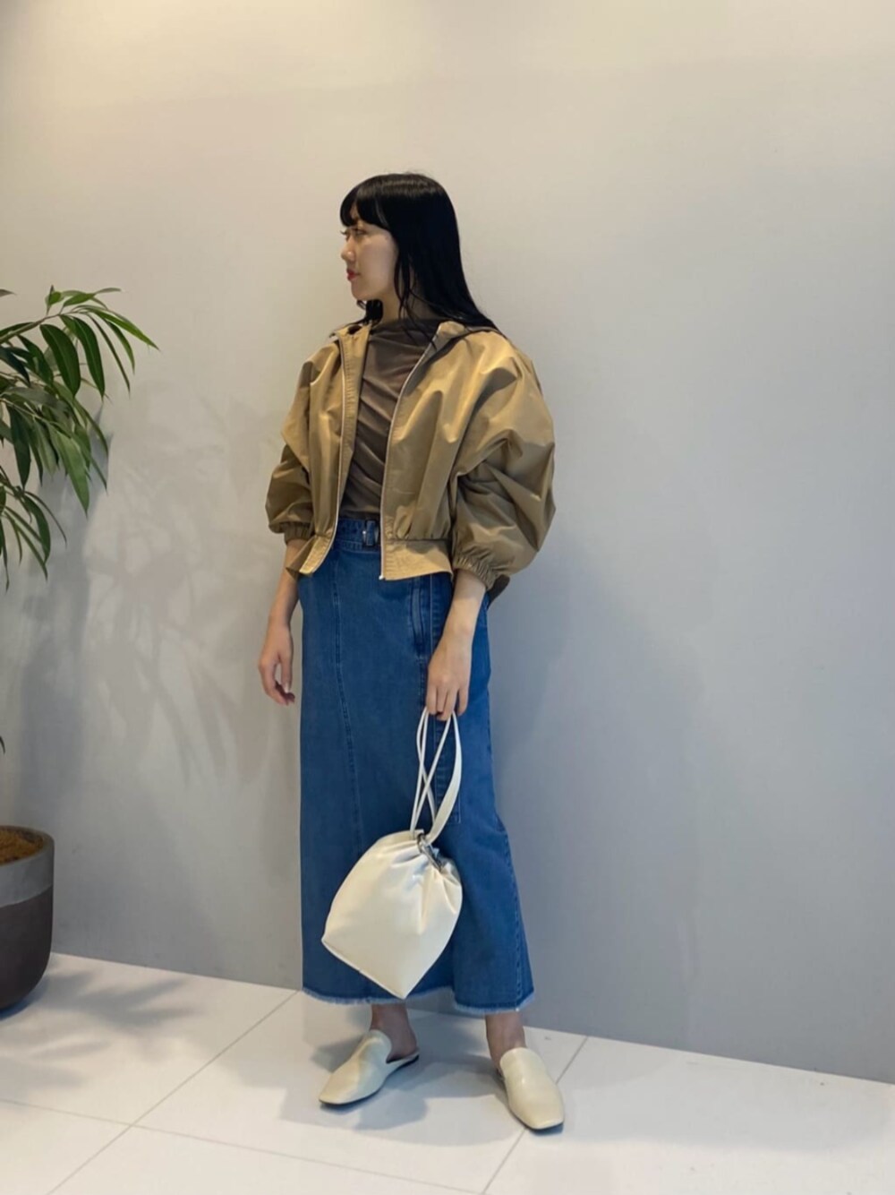 店頭でも人気上昇中⤴️ 季節の変わり目にオススメコーデ。 夏の暑さが抜けて、気温が落ち着いてくると羽織が気になりますよね。店頭でも試着・購入が増えてます♪ 【ドルマンスリーブフーディブルゾン】は、着丈が短め設定でコーデのバランスを整えてくれる優秀さ。裾のペプラム切り替えが好評です♡ ドルマンスリーブは少しプッシュアップして手首を出してあげると抜け感が出ます☝️ 今回はカジュアルにデニムスカートと合わせました。Iラインが綺麗な【ストレートデニムスカート】は季節問わず使えて万能です♪生地が柔らかく、穿き心地も快適でした。 「今すぐ使える」を意識したコーディネート。
