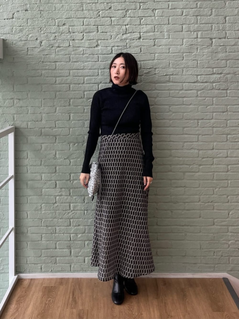 【サイズ感】 トップス:標準 ボトムス:標準 【着用レビュー】 ヴィンテージ柄スカートを活かしたシンプルコーデ♪ ラメ入りタートルは何にでも合わせやすい万能アイテム! 袖が長めなのも今っぽくてかわいいです! スカートは一年中穿ける薄めの素材。 重ためニットと合わせて冬も活躍します♪ ヒップラインを拾わず、シルエットがとてもきれいです☆